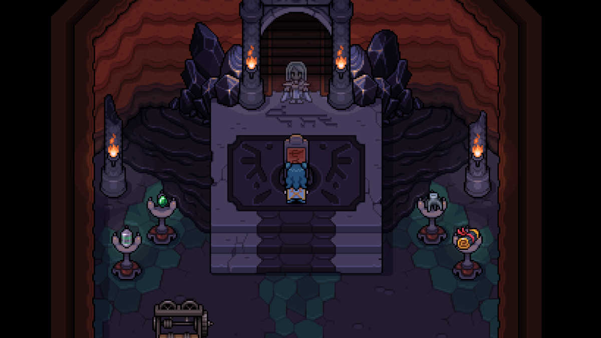 However, this is not a straightforward task. Once you’ve placed the items onto their respective pedestals, the Sealing Scroll will float and the Priestess will warn you to flee. You won’t get far before the Sealing Scroll traps you within a circle and saps you of health and stamina.