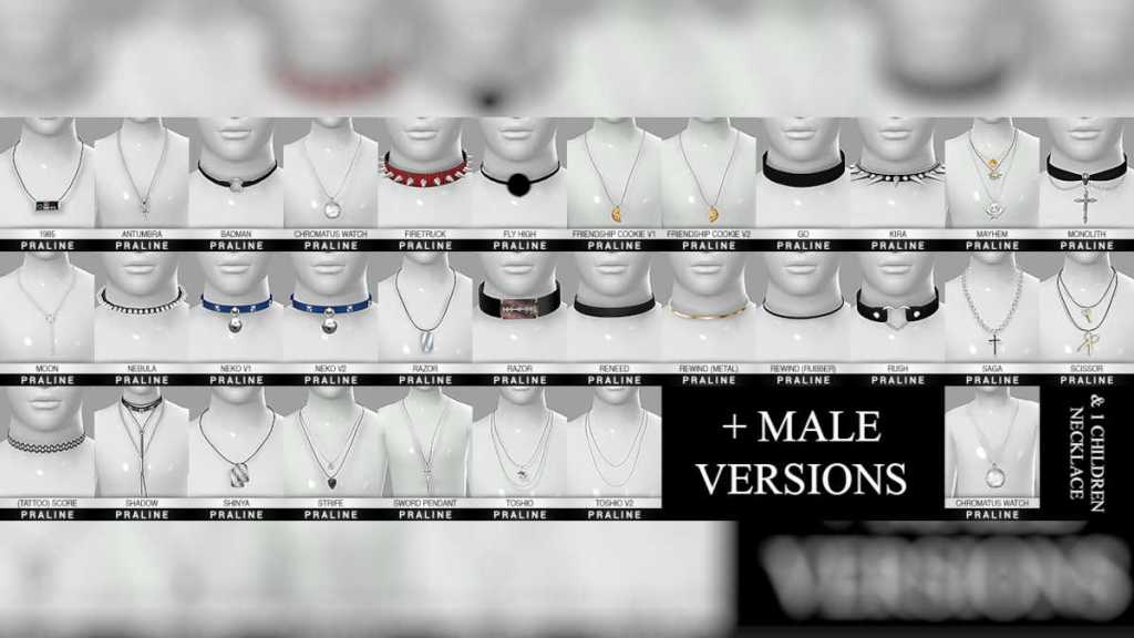 If there’s a common fashion trend between all goth sub-cultures, it’s chokers, and there are hundreds of different types out there for all styles. If you want a solid collection for your CAS purposes, then the Ultimate Necklace Collection by PralineSims is worth its file size in gold. It comes with 170 different styles of chokers and necklaces, and there’s something for everyone in the set.