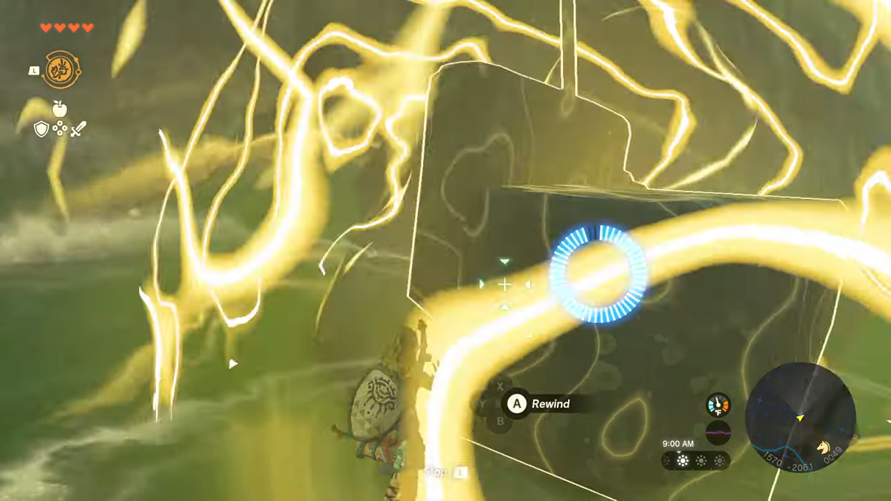 - A chunk of rock suddenly falls from the sky, and Link uses the rewind power to cause it to fly back up, with Link riding it in the process