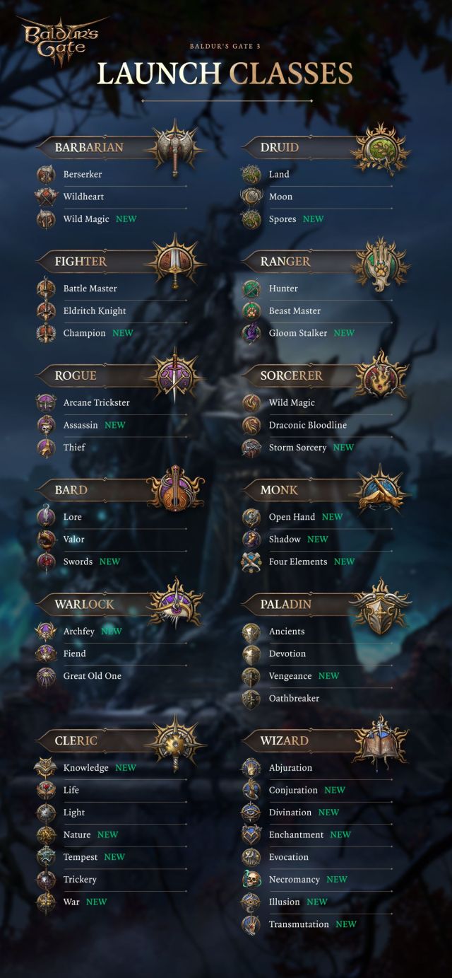 These classes dictate a lot, and there are also a lot of them. Here’s the rough rundown from Larian on what classes and subclasses are in at launch: