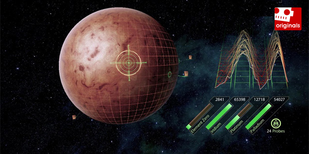 But scanning does not involve landing on said planets. Oh no. The mostly menu-based process of scanning involves you slowly and meticulously moving a cursor over a 3D model of every planet, looking for the presence of minerals below the planet’s surface. Once minerals are discovered, a probe is sent out, retrieving these minerals and adding them to your collection.