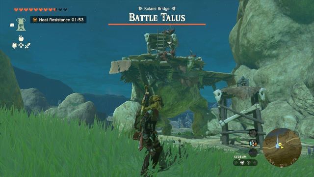 Finding the ninth Battle Talus is simple. You’ll need to make your way to the Kolami Bridge. It’s south of the Oromuwak Shrine. Once you make it to the Kolami Bridge, you’ll find the Battle Talus on the platform underneath the bridge. Its coordinates are (-3086, 1273, 0156)