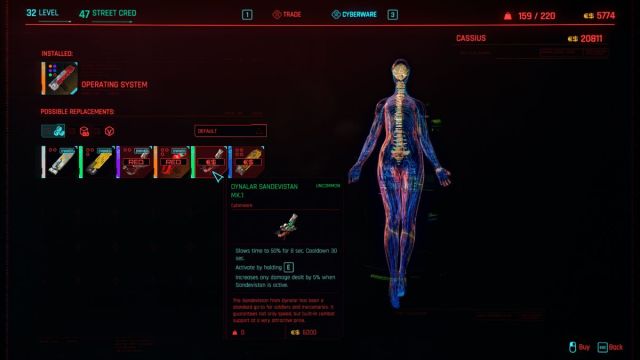 There, you can pick up a Dynalar Sandevistan Mk. 1 for cheap, about €$6000. It’s a decent set-up with low cooldown time and, most importantly, a good damage boost.