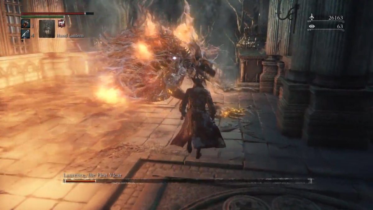 Lawrence looks and plays just like a higher-hp rehash of the Cleric Beast, one of the first and more basic bosses from the original game — until he doesn’t. It’s only after taking over half of this brick wall’s HP that players realize things won’t turn out as simple as expected. Lawrence will lose his lower limbs and somehow become a much more formidable opponent. At this point, he’ll maintain the tired character model. Not only will he gain a completely new move set, but also the ability to continually bleed deadly lava all over the play area.