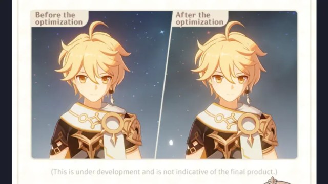 There will also be a new “Dynamic Character Resolution” function that dynamically changes the details of character models to maximize performance. I can’t see much of a difference between HoYoverse’s example images, but the edges of Aether’s ring-shaped ornament and pauldron do seem a bit smoother after optimization.