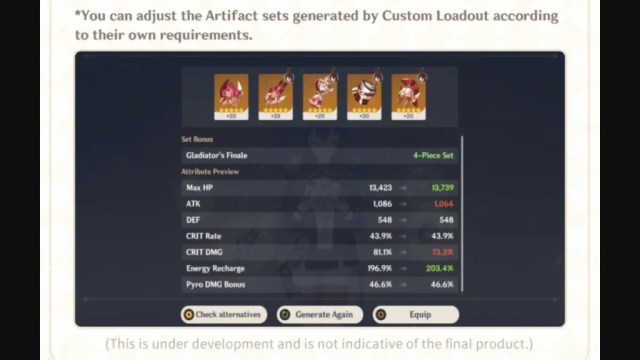The custom loadout function looks like it requires a few more brain cells to set up though, and those who really care about min-maxing their artifacts probably already use Genshin Optimizer or other calculators.
