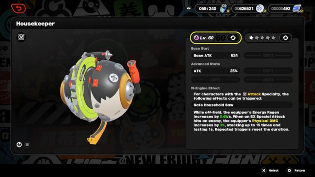 Among the A-Rank W-Engines, my main pick will be her signature Housekeeper, which will provide her with 624 base attack and a 25% ATK increase while at level 60.