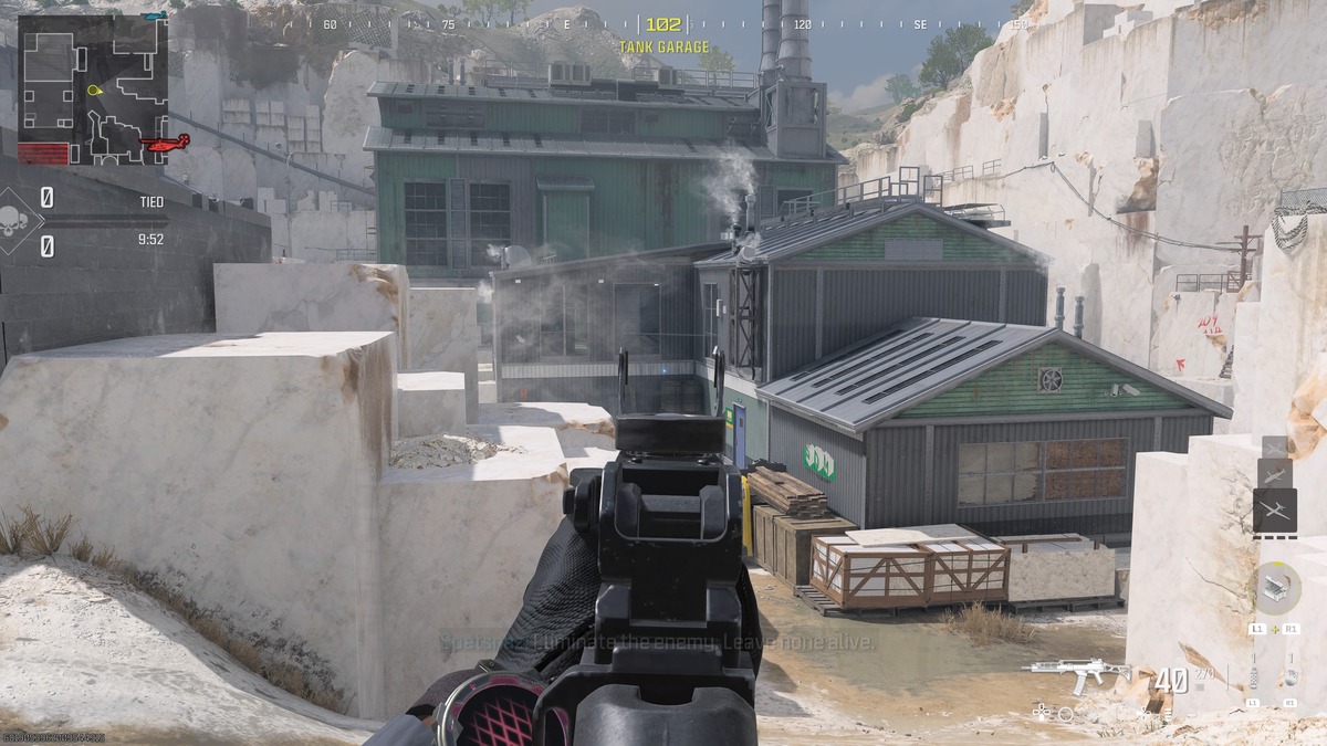 This particular build reduces some of the recoil issues with this weapon so its aiming feels quite easy to handle, even at further ranges. In addition, the range improves with this loadout so you can fire back at enemies from across the various named locations on the Urzikstan map. You lose some of the speed up close, but you can make up for this with a faster secondary weapon.