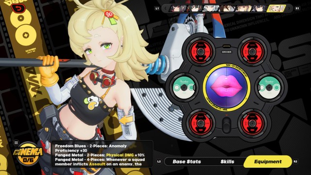 Using the Battle Pass exclusive Electro-Lip Gloss can also work here, as apart from its 594 ATK and 75 Anomaly Proficiency values at level 60, the engine will allow Piper to get a 10% ATK buff if an enemy afflicted by an anomaly is on the field, as well as deal 15% more damage to it (at one star).