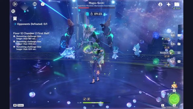 The Maguu Kenki in the first half is the vanilla version of the boss, not the triple Kenki in recent Abyss cycles. This should be a much easier challenge; just be aware that it will briefly turn invincible and do a large AoE slam at about two-thirds of its health.