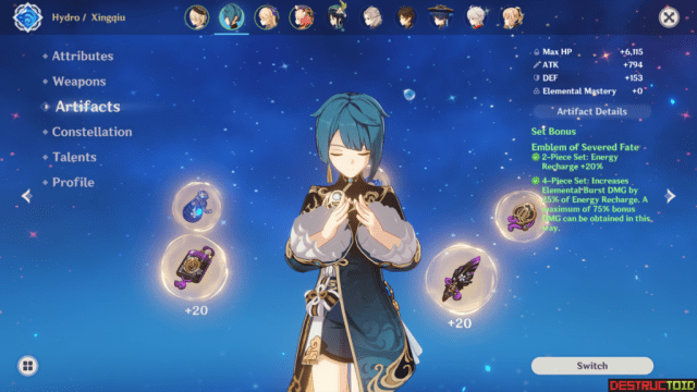 The rest of Xingqiu’s stats can be invested in CRIT and ATK.