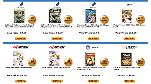 Only two that I’m even interested in would be Eat Lead and Onechanbara. Of course, this is NewEgg so no surprise that they don’t have much in terms of game deals. NewEgg does have a ton of deals going on right now for computer monitors, memory, motherboards and all sorts of computer parts as one would expect.