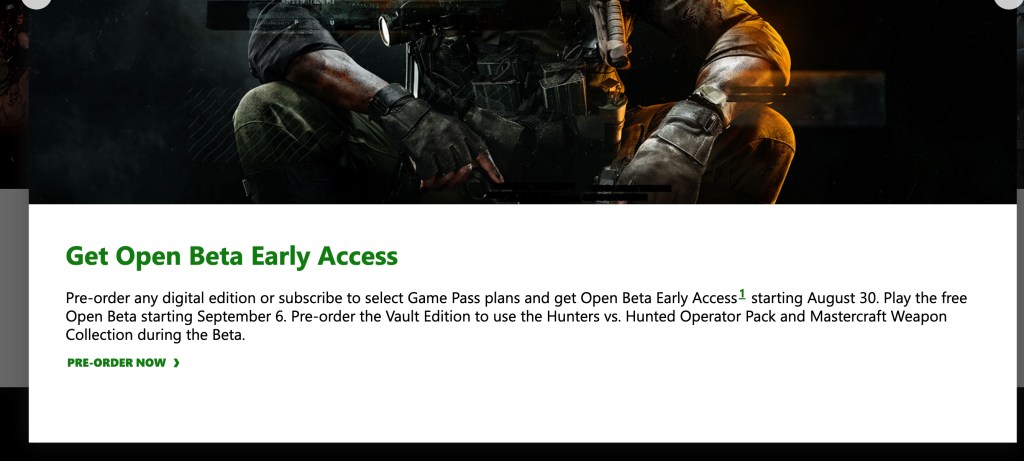Given all the hype around this particular Call of Duty title, it seems like the Xbox website has prematurely revealed the dates. The open beta announcement would have feasibly arrived with a few more theatrics.