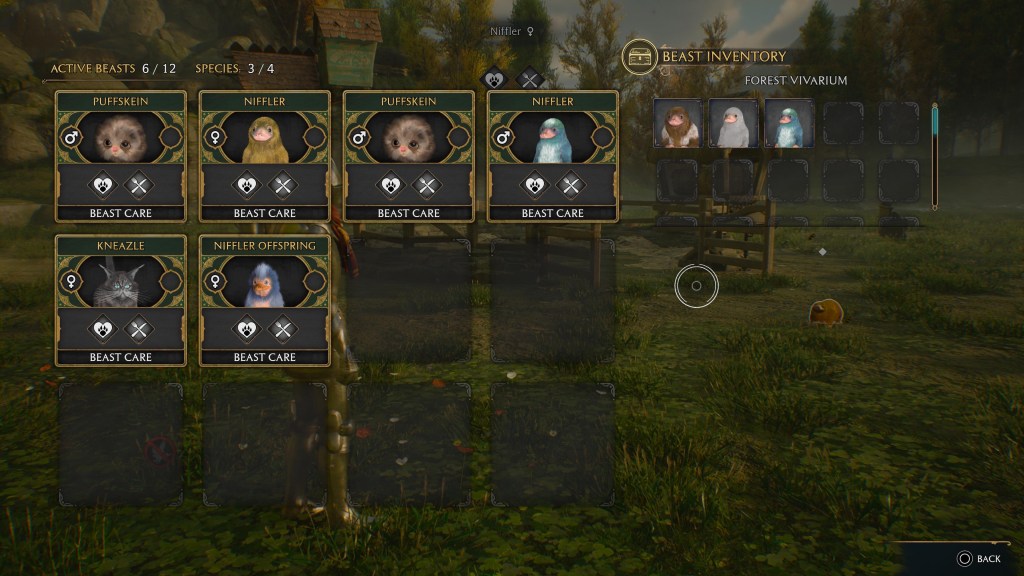 The way Vivariums work is that you can technically hold 12 beasts at a time, but they can only be from three different species. In other words, if you had a Puffskein, a Niffler, a Kneazle, and a Thestral in the same Vivarium, you couldn’t hold any more of any other kind of species there. However, you could use 12 creatures from those four aforementioned species.