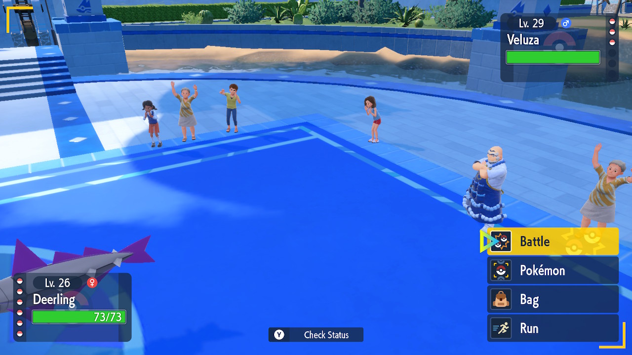 In all likelihood, the water gym in Cascarrafa could be a spot you visit very early, and conquer with no problem. The gym leader Kofu’s laid back personality also extends to his gym battle series, which is really low stakes, and only involves three total combatants. If you started with Sprigatito, you may even be able to take this gym out while under-leveled. Plus, he has one of the lowest effort gym tests in the game.