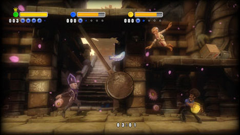 Sony brought along some of the upcoming PlayStation Network games to CES this year, and Rag Doll Kung Fu: Fists of Plastic is one of the coolest ones we’ve played. This is a multiplayer party fighter, kind of like the Smash Bros. games, but with a shift of focus from Nintendo characters to nonsense and plastic-y characters that look like toys.