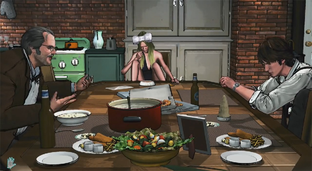Keep an eye on David Young (the guy who doesn’t look like Philip Seymour Hoffman). He’s the time-traveling protagonist of D4: Dark Dreams Don’t Die, an Xbox One adventure game from Deadly Premonition director Swery, and oh my god that pile of oyster crackers is too much.