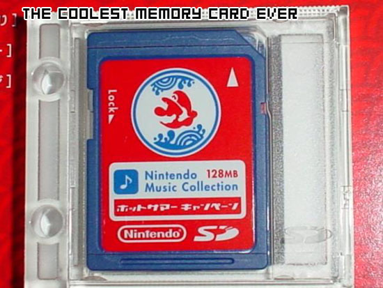 Well, the future is now… for Japanese Club Nintendo members. The bastards that get everything cool also get this SD card packed with musical goodness. Even though this almost seems to promote piracy, you can’t deny the Do Want-ness of this exclusive Club Nintendo item. Brett Martin sends along pictures of this Nintendo Music Collection, packed with 128mb of musical goodness.