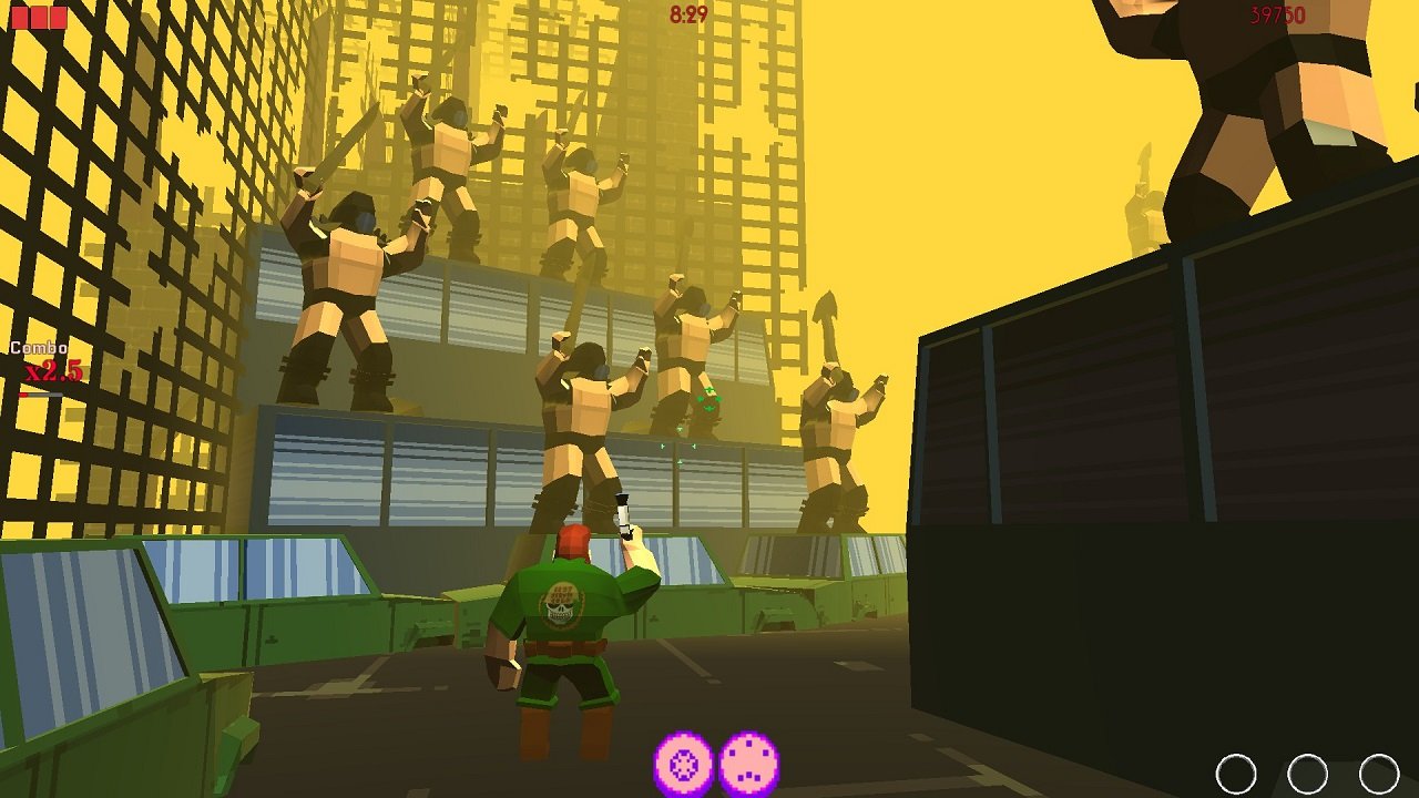 Like any other run ‘n’ gun shooter, progressing through Cold Vengeance boils down to shooting the ever-loving shit out of anything that crosses your path while always moving forward. But because it takes place in a 3D space, multiple, diverging paths can be taken through every stage. An alleyway that ends in a form means two remarkably different routes. Sometimes rubble can obscure a more direct, (mildly) safer path you might have missed if you made don’t bother to take in your surroundings. Collectible coins and numerous powerups litter each stage. Finding them – usually through a little bit of camera manipulation and light exploration – is always worth your time, because Jon Dagger needs every advantage he can get to stay alive.