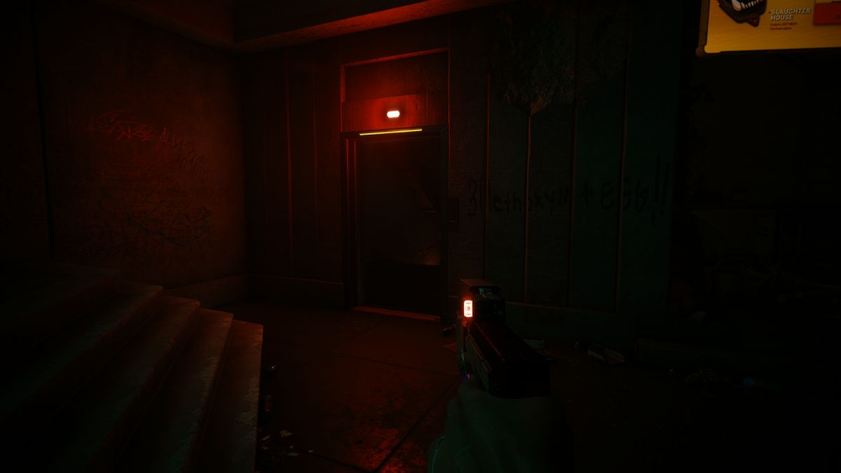 Entering the clinic, you can go either peacefully or aggressively; I accidentally set off an alarm and went guns blazing, but you can also opt to sneak by or non-lethally incapacitate the scavs. You’re looking for a door at the back-right of the room, on the first floor. (There’s an elevator too, but it’s out of order right now.)