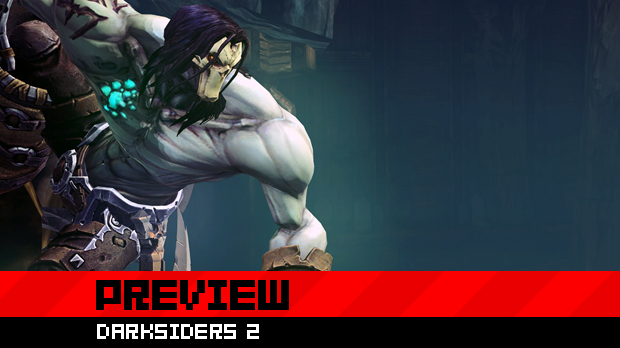 In this case, we were about 25% into Darksiders II where I got to see the second major area, the Abyssal Plains. Unlike the first game, Darksiders II takes place in the Nether Realms and this allows the team to present more of a fantasy setting. This opens up the art direction and gives the artists more freedom when it comes to the fantastic and stylish art direction as opposed to the Earth setting of the first game.