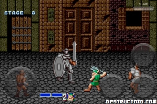 The classic game appears to be fully playable using the touch screen, which is overlayed with a mostly-transparent d-pad and three button set-up. Not sure what you’re supposed to do when a dwarf runs off with your magic vile and gets all up underneath your thumb, but I’m sure Sega has it worked out.