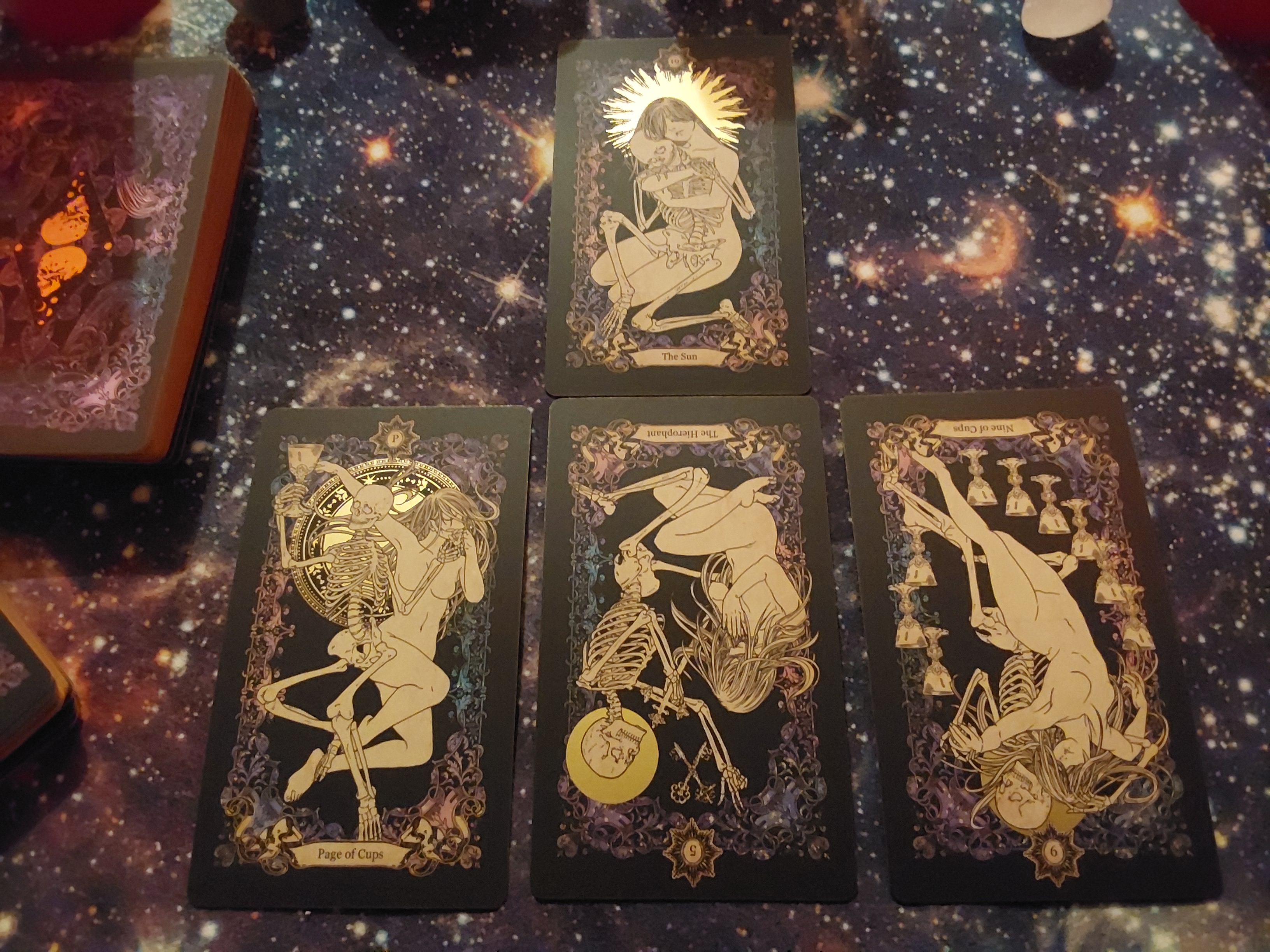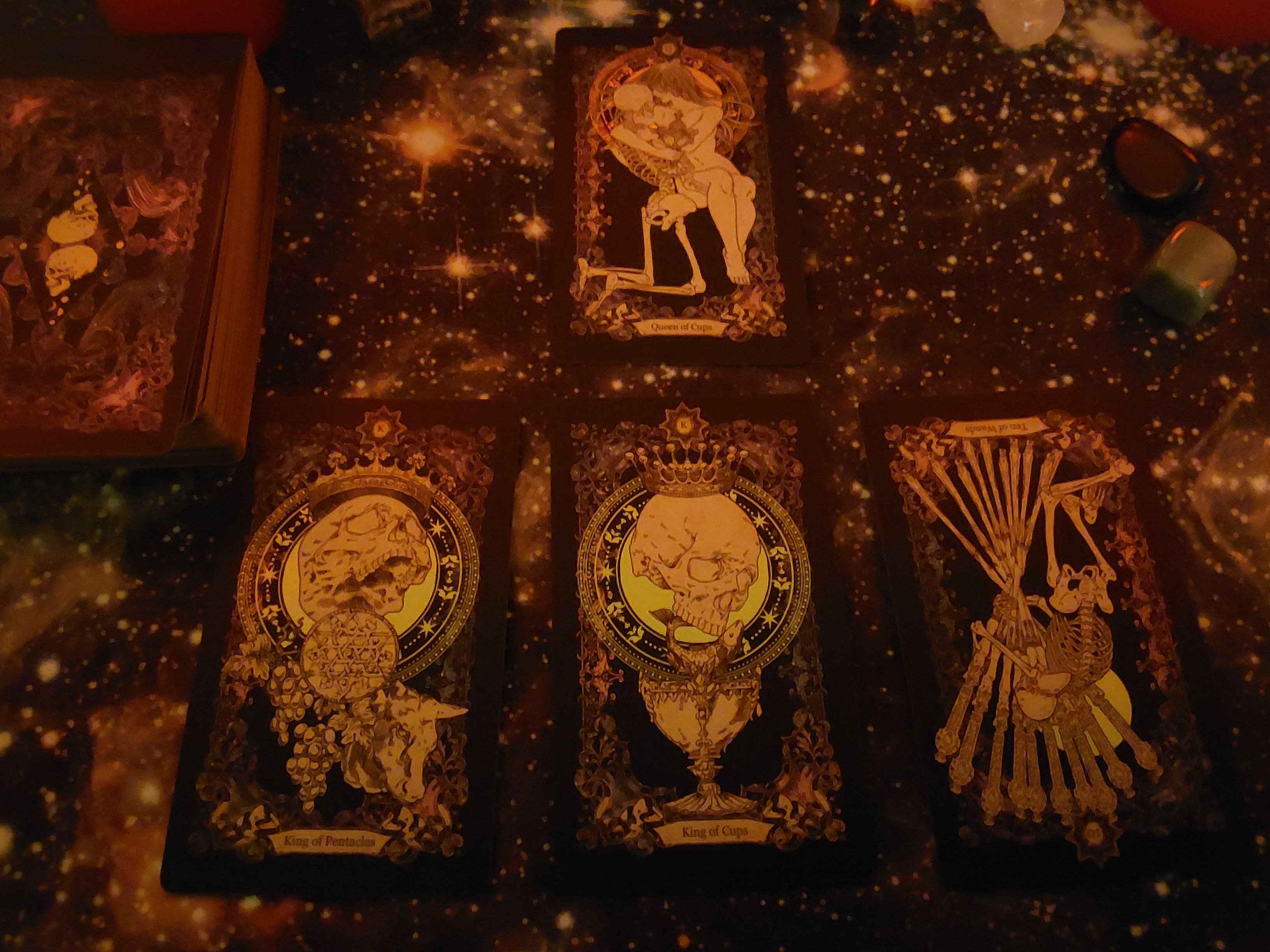 The theme of this reading is Death. This card always gets a bad rap; people think it’s all gloom and doom or someone will die, but the Death card also signifies endings as well as new beginnings. Let’s roll with that.