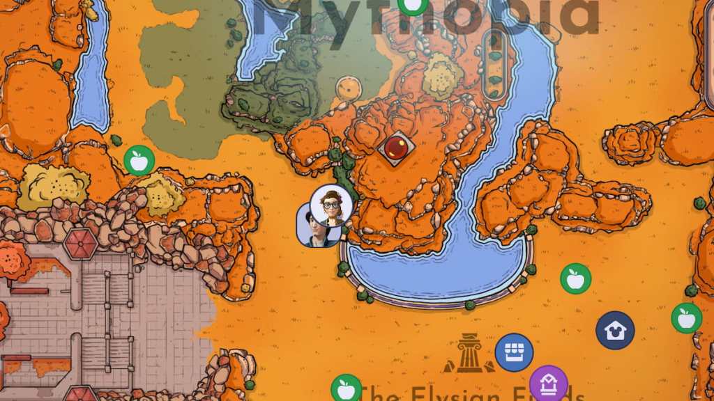 The location you’re looking for is Elysian Fields. On your map, you’ll see green foliage next to a red building. Interact with it and the yellow pool inside to get a vial of sacred water before returning to Hades.