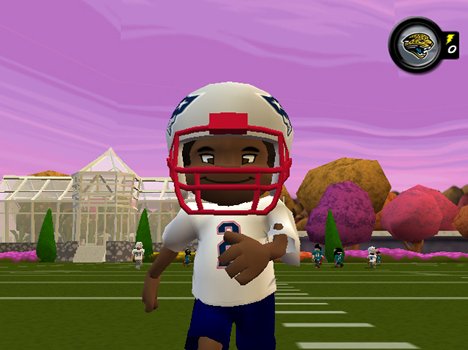 Backyard has everything you’d expect from a football videogame placed within the context of a friendly neighborhood 7 on 7 game. Super stadiums are replaced with locations like a school field, a farm, or even a castle courtyard. Players can choose from all 32 NFL team uniforms and logos, with at least one pro kid player from every team. Once teams are formed, players can choose between single game or season mode, or play in two player mode with another person. Finally, while playing stats will certainly help you choose the best players for your team, each player has a happiness level which will also help determine how they’ll perform on the field.
