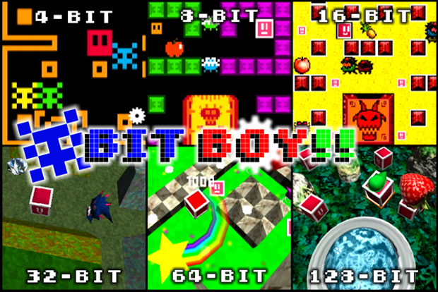 One of my favorite segments of RetroforceGO! are Colette’s WiiWare reviews, simply because of the ridiculously titled games and the ensuing five-minute long Chad laugh. Unfortunately, developer Bplus seems set to ruin this weekly ritual by announcing a WiiWare game that not only has a decent title, but actually looks quite promising. The game in question, Bit Boy!!, features the single-pixilated protagonist Kubi, as he travels across increasingly higher bit worlds — starting from 4-bit and going all the way up to 128-bit — in search of his kidnapped friends.