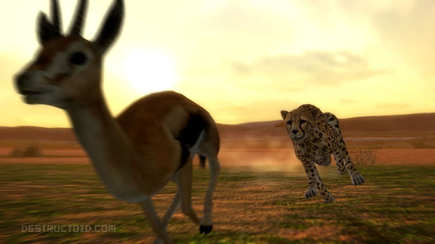 Here’s something that might surprise you: Afrika’s photography element is like an advertisement for Sony SLR cameras. When you’re out on the safari, you’ll actually use specific makes of Sony cameras and lenses. All of the control and setting options for Sony cameras are available in game, too. You actually see renders of the line Sony cameras in menus, and pick up, say, the Sony a700.