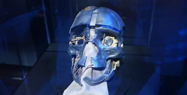 Here is a replica mask worn by the main character of Dishonored. Here’s a side view of the mask.