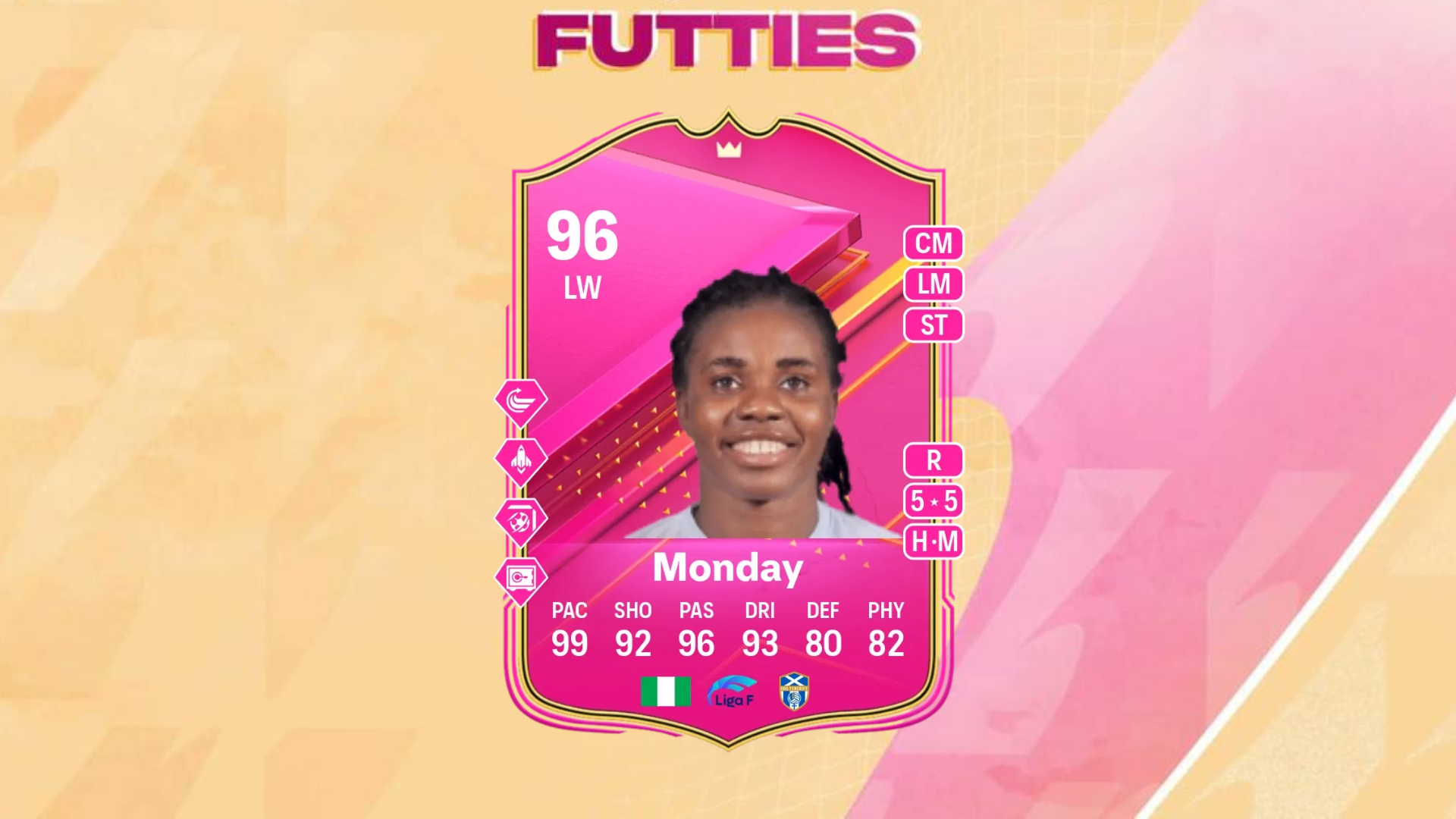 If you used Gift Links in FIFA 23, you’ll know that this card is going to be equally fun to use. Is she going to be super-meta? No. But she has the correct playstyles required to survive in the current in-game meta. In fact, she could be really helpful to use if you plan on spamming crosses from the wings. Just boost her base Shooting and Dribbling and she should be good to go in the competitive modes.