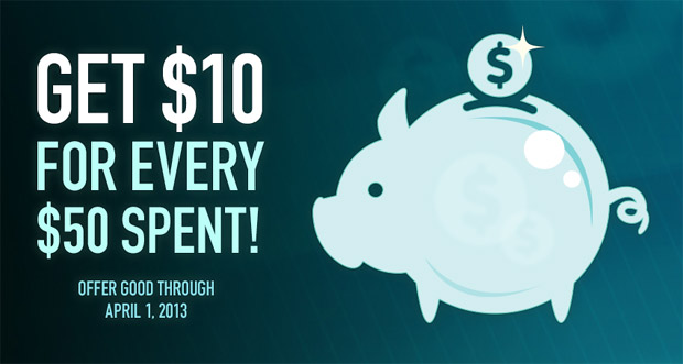 Beginning today in North America, for every $50 you spend using your Sony Entertainment Network Wallet, you’ll receive $10 back in April. This offer lasts through the end of March and anything purchased through the SEN — whether that be games, movies, or a subscription to PlayStation Plus — is considered applicable. Pretty sweet deal, actually.