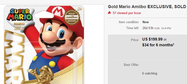 After starting my morning off with a cup of iced tea, I noticed a nonchalant tweet by eBay in regards to the gold Mario amiibo: “This gold #Mario #amiibo sold out in minutes, but is available on eBay right now!”