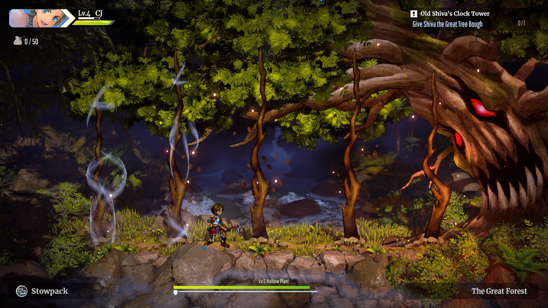 It made me sit back up a little and start to engage with the combat a bit more, which also ticked up a notch as enemies started using different attacks too. It’s still pretty straightforward, but now I was able to link attacks between CJ and Garoo, creating combos and doing way more damage. It felt really good to hit the enemy with a double-smack from CJ, then follow it up with a big swing from Garoo that the enemy might have dodged otherwise.