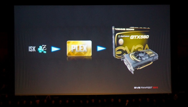 NVIDIA and CCP announced at the CCP keynote today that EVE players will be able to buy a GTX 560 high-end graphics card with in-game currency. How much will this cost players? Just 20 PLEX, and that includes shipping too.