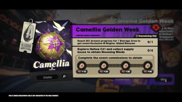 The Camellia Golden Week event will feature a variety of minigames and puzzle levels. Delve into a new Companion Hollow to earn Polychromes and an event-exclusive A-Rank W-Engine: Camellia.
