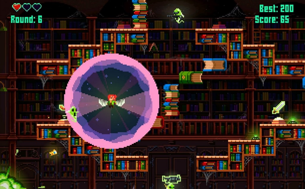 Exorcism‘s whole gimmick is that each round, ghosts will appear, eventually filling the screen as time goes on. But there’s a big caveat — each ghost will mimic your prior actions and weapon. In other words, you are essentially competing with yourself every round, as the game forces you to remember your moves, and potentially make bad plays to keep ghosts on a leash.