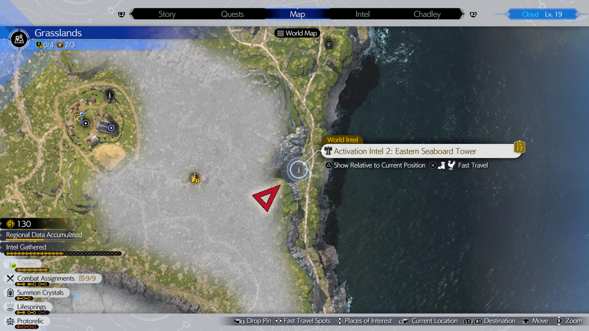 To handle Activation Intel 2 at the Eastern Seaboard Tower, take the scenic route if you want, completing the Moogle Intel quest along the way. Otherwise, it’s an easy trip over to the eastern side of the Grasslands for new intel points to explore.