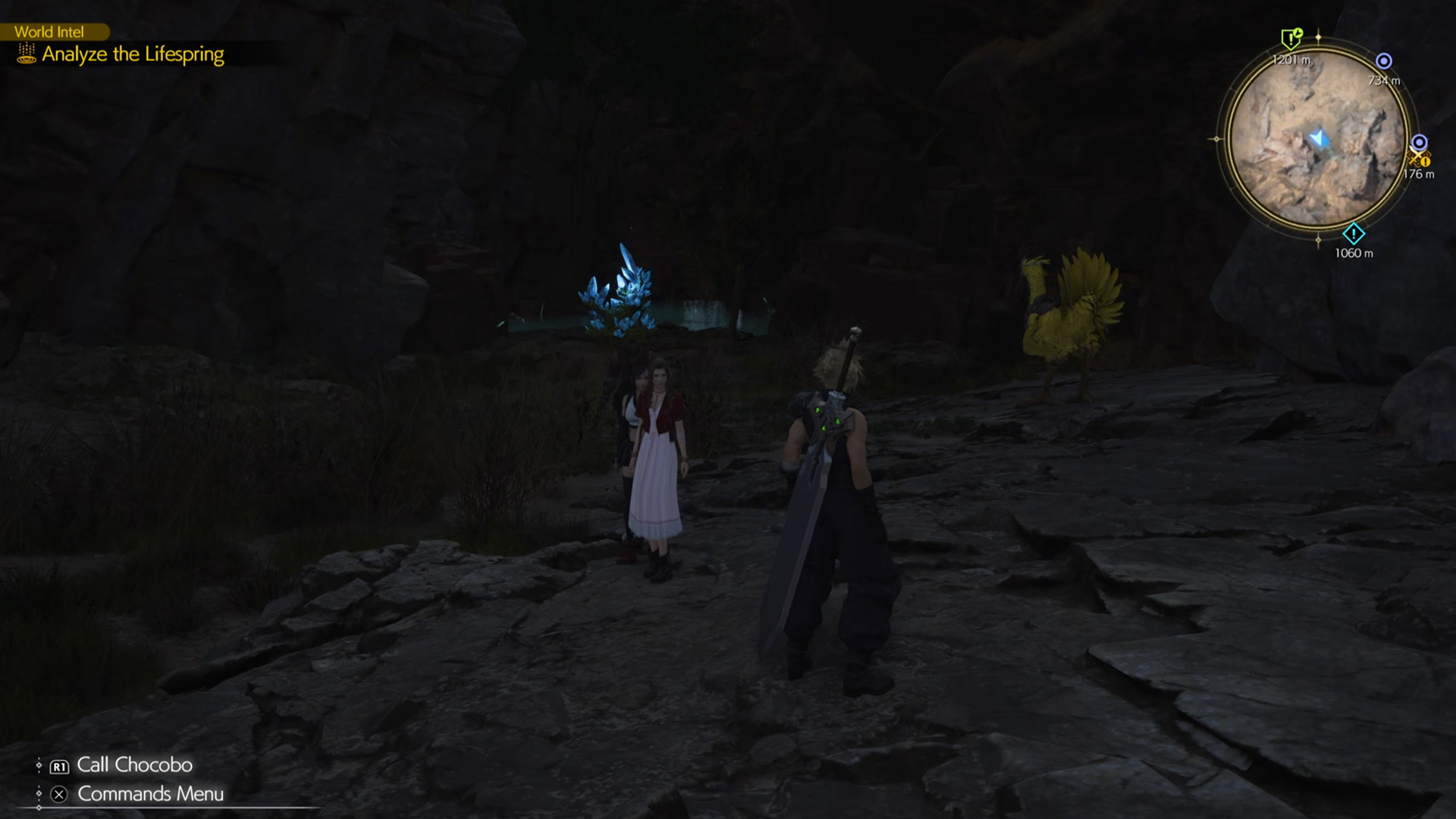 Time to put that bird to work. As Cloud and the gang approach whatever is left of an old, brick building, Chadley pipes up again to explain Excavating with Chocobo companions. Sniff around and follow the trail, the party must find three artifacts before marking this task as complete.