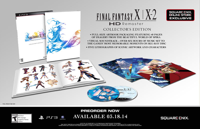 Square Enix has announced a Collector’s Edition for PS3 release Final Fantasy X / X-2 HD Remaster. Set for release on March 18, 2014, this edition will only be available at the Square Enix Online Store, priced at $79.99.