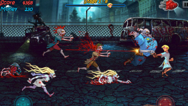 Zombie Shock is a game in which players are chased by (obviously) zombies. The character runs on his own, but you can move him around the screen to avoid encroaching zombie attackers. The aim of the game is very simple — shoot all the zombies before they tear you apart. It’s beautifully drawn, it’s got some great sound and voice work, and the gameplay is really awesome once you get the hang of it.
