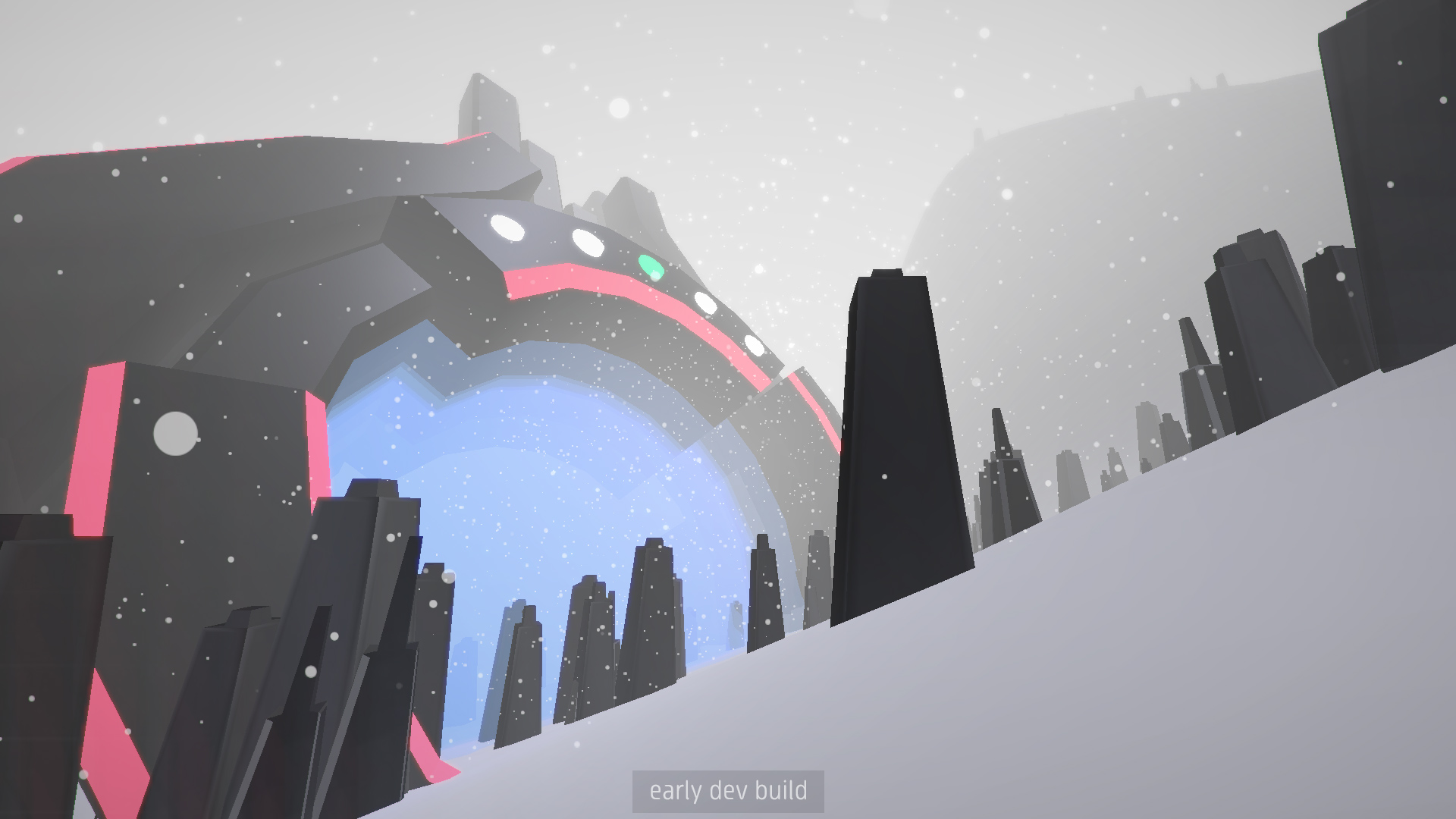 Fulcrum is set on an endless mountain, but players have control over the flow of scenery. Areas loop until the player collects an orb, at which point the oncoming terrain shifts into something new. And it’s not just for show — besides giving snowboarders freedom to explore until they’re ready to move on, this mechanic plays into what are essentially environmental puzzles.
