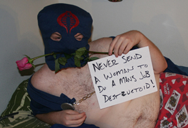 Finally, I want to give special credit to Super Drybones, who went so far as to mail threats to our head office, take a silly amount of photos, and spend much of his Destructoid time “in character,” as it were. Although he does not win an official prize, I am going to ask our contest department if there is some Dtoid-flavored goodies lying around the office that we can send him, just for being an awesome chap.
