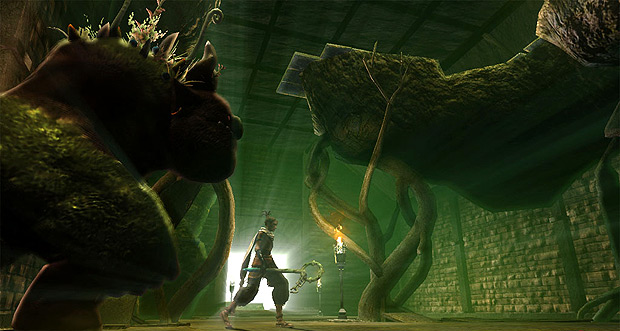 Majin is an action/adventure game about a young thief who finds a forgotten kingdom. The trailer embedded after the break hints at combat and stealth, but the real kicker is the protagonist’s sidekick: a golem-esque creature who looks like he’s rather late for the Wild Rumpus. The trailer doesn’t reveal much, except that the “creature of legend” enjoys kicking ass and making leaves turn pink. That’s literally the only information available right now: such is the nature of announcements.