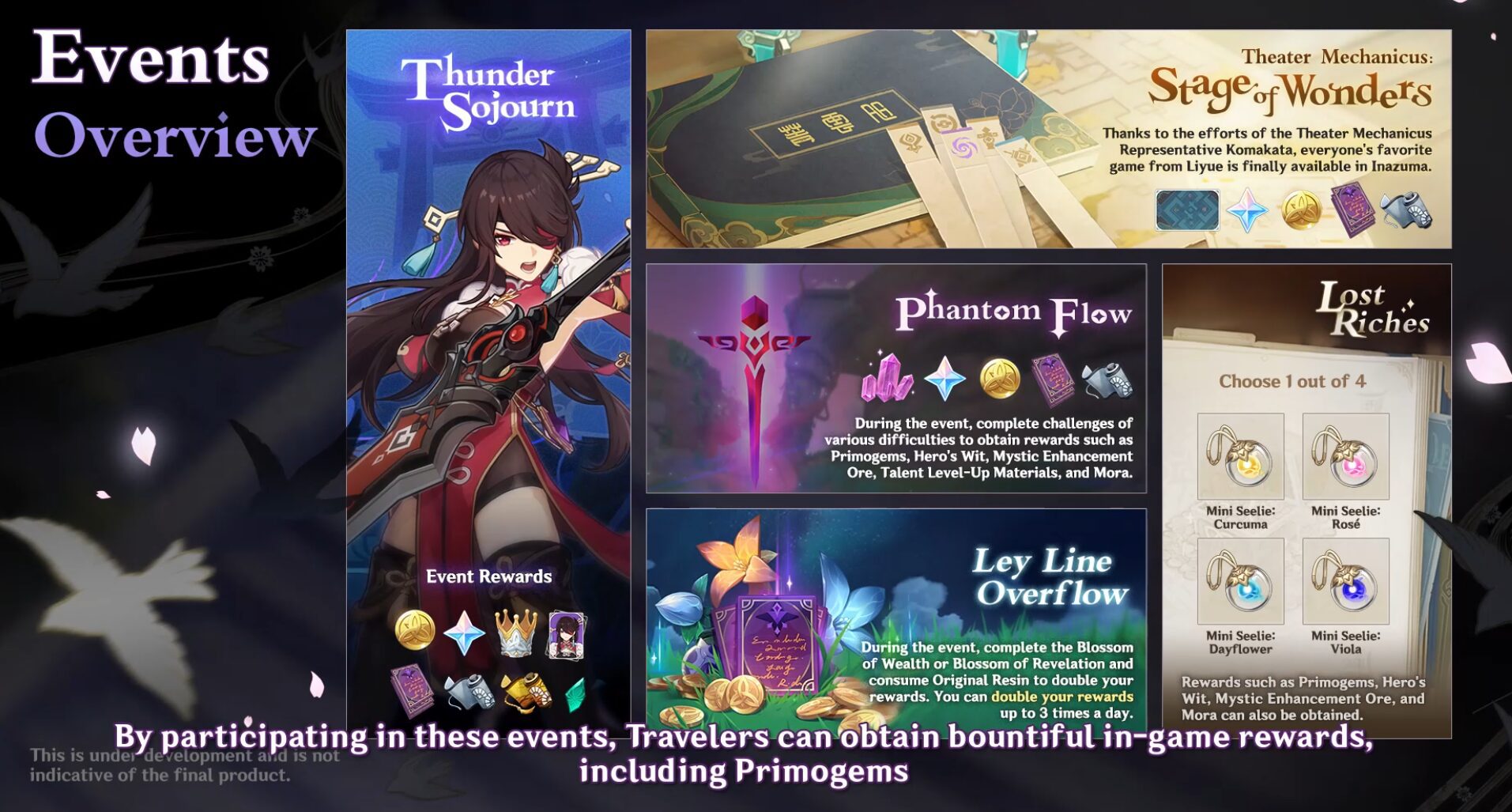 Near the end of the stream we got a vague roadmap of events coming to the Inazuma region, as well as the farming/plant system.