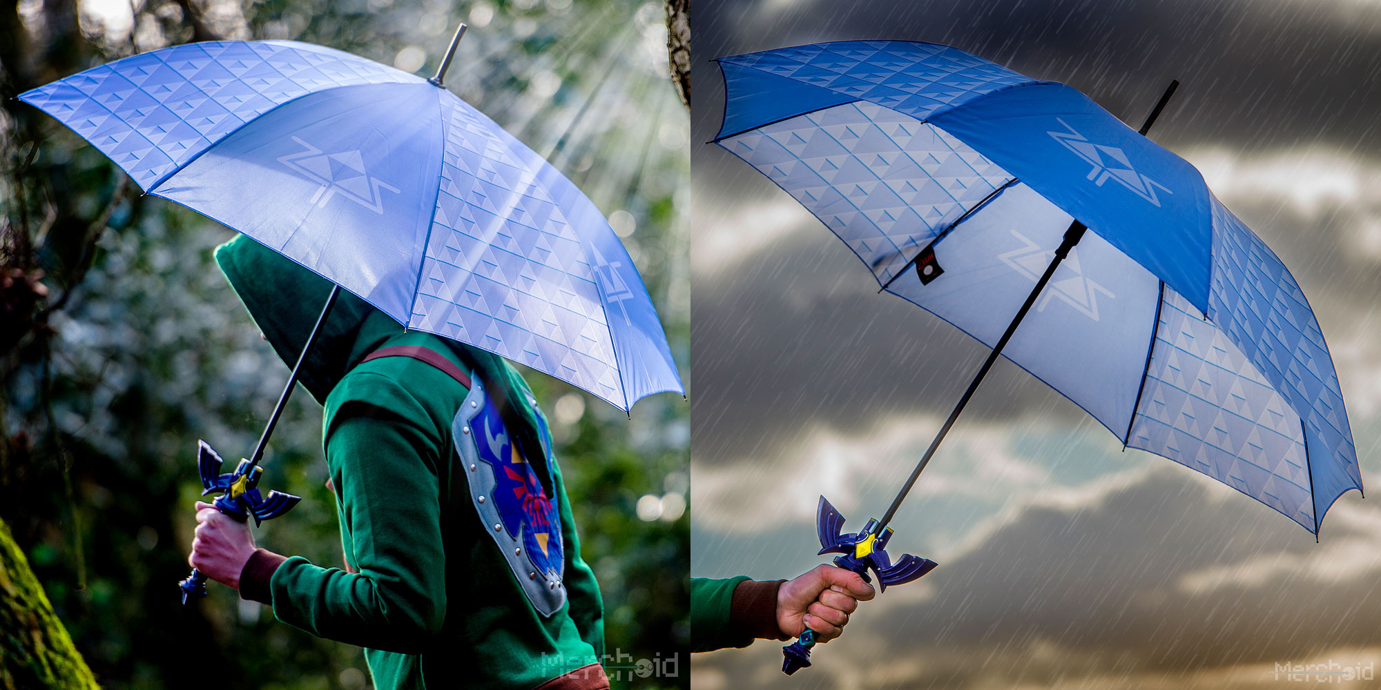 Gaming merchandise retailer Merchoid is coming out with a Nintendo-licensed Legend of Zelda umbrella that resembles the Master Sword. There’s even a little shoulder-mounted sling to carry it in!