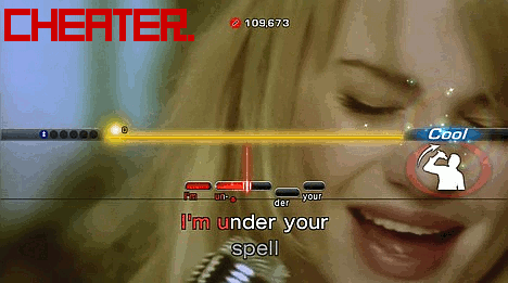 There are some variables that go into this exhaling mechanism. First, if it’s a song like A-Ha’s “Take on Me,” you need to blow in bursts. Occasionally, you can blow through all the words in one mighty puff, but the game is manic in this regard. Secondly, quit smoking if you want to do this. After my fifteen-minute experiment, I was about to die.