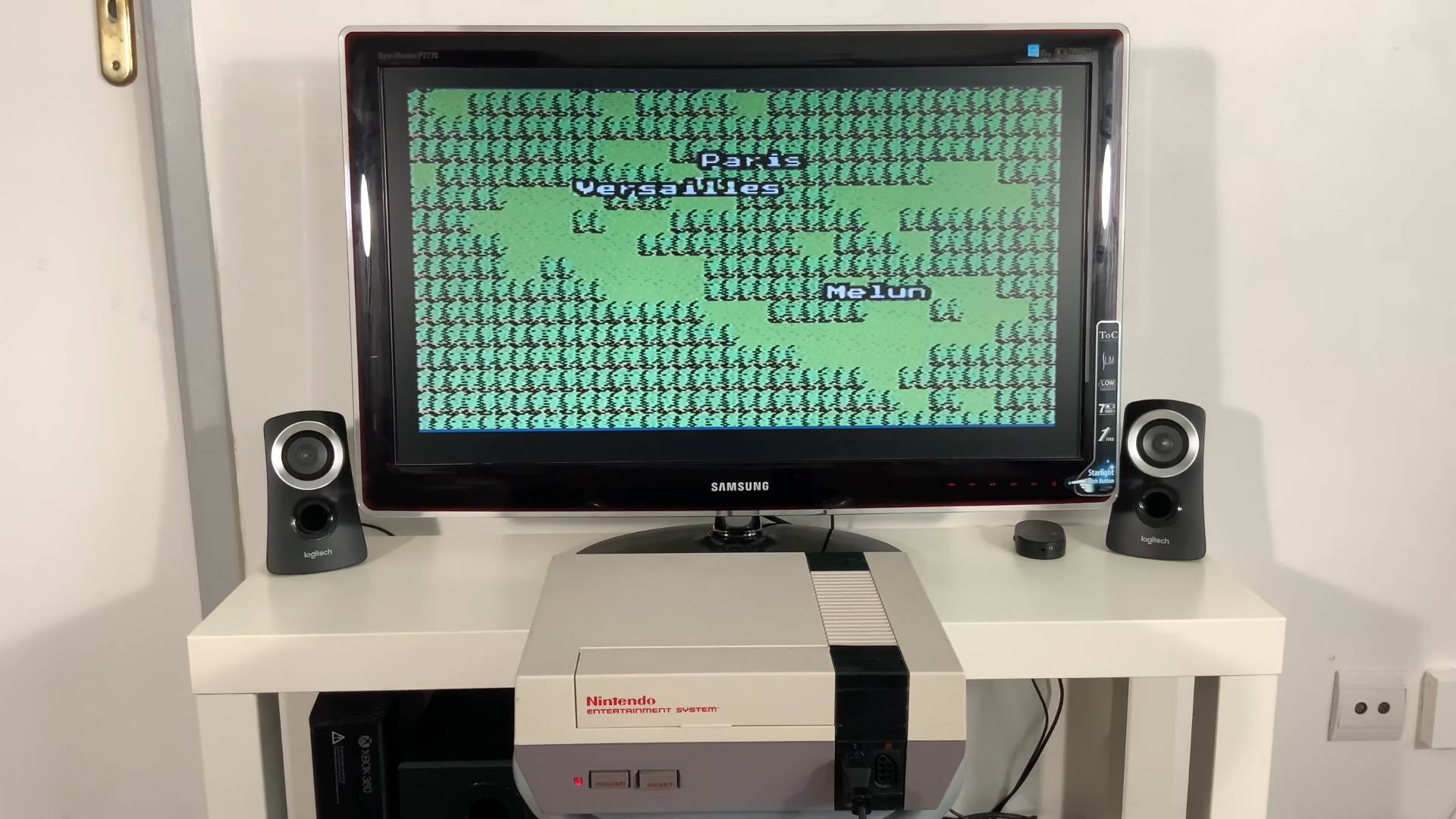 The result is Google Maps, showcasing a rough layout of the world constructed in 8-bit, that seems accurate. They scroll around it a bit using the NES controller, and you can see little city markers pop up, in retro-styled font.